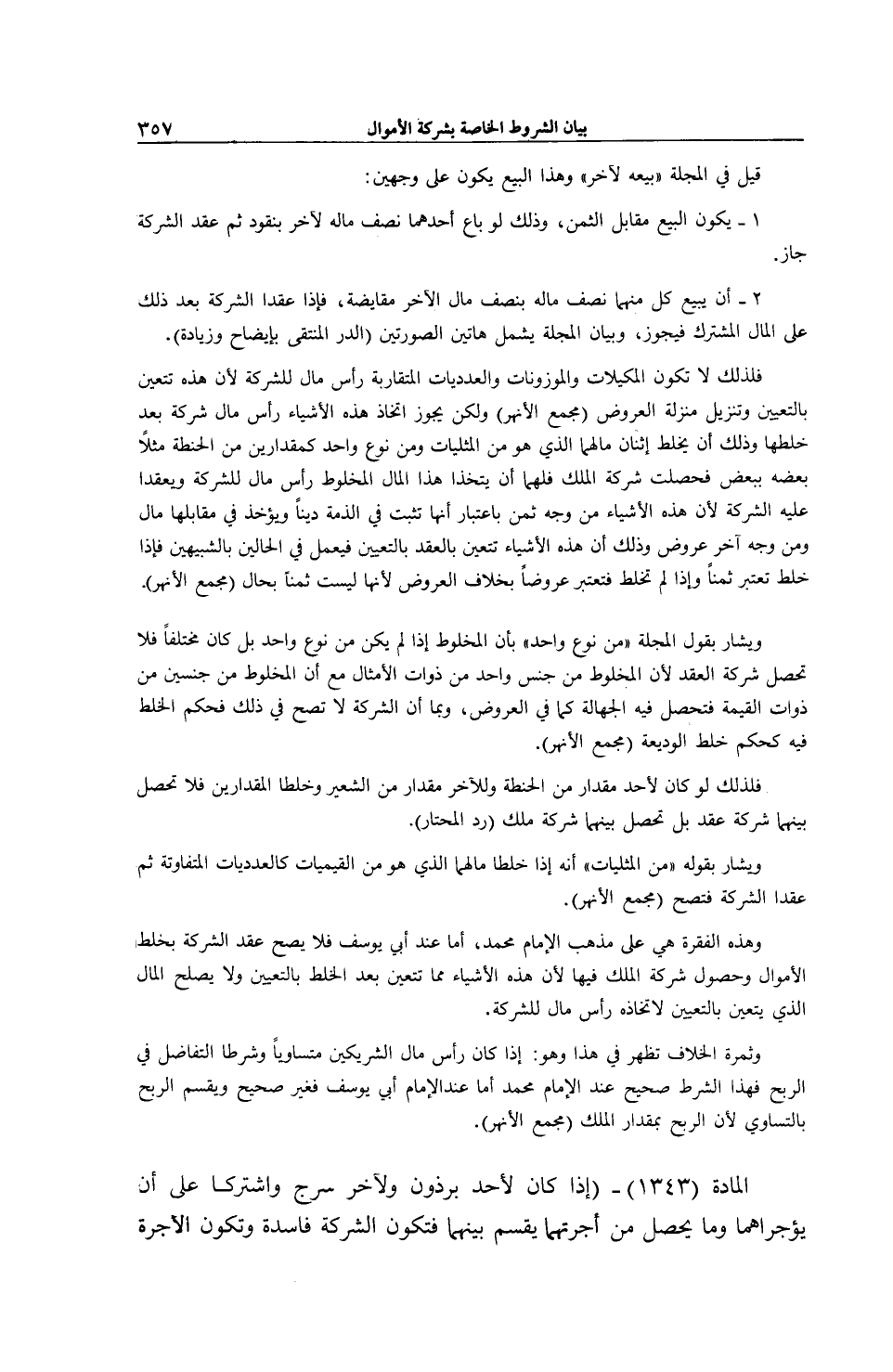 2 - أَنْ يَبِيعَ كُلٌّ مِنْهُمَا نِصْفَ مَالِهِ بِنِصْفِ مَالِ الْآخَرِ مُقَايَضَةً، فَإِذَا عَقَدَا الشَّرِكَةَ بَعْدَ ذَلِكَ عَلَى الْمَالِ الْمُشْتَرَكِ فَيَجُوزُ، وَبَيَانُ الْمَجَلَّةِ يَشْمَلُ هَاتَيْنِ الصُّورَتَيْنِ (الدُّرّ الْمُنْتَقَى بِإِيضَاحٍ وَزِيَادَةٍ) .