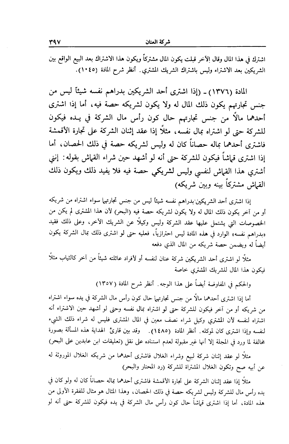 [ (الْمَادَّةُ 1376) اشْتَرَى أَحَدُ الشَّرِيكَيْنِ بِدَرَاهِمِ نَفْسِهِ شَيْئًا لَيْسَ مِنْ جِنْسِ تِجَارَتِهِمْ]