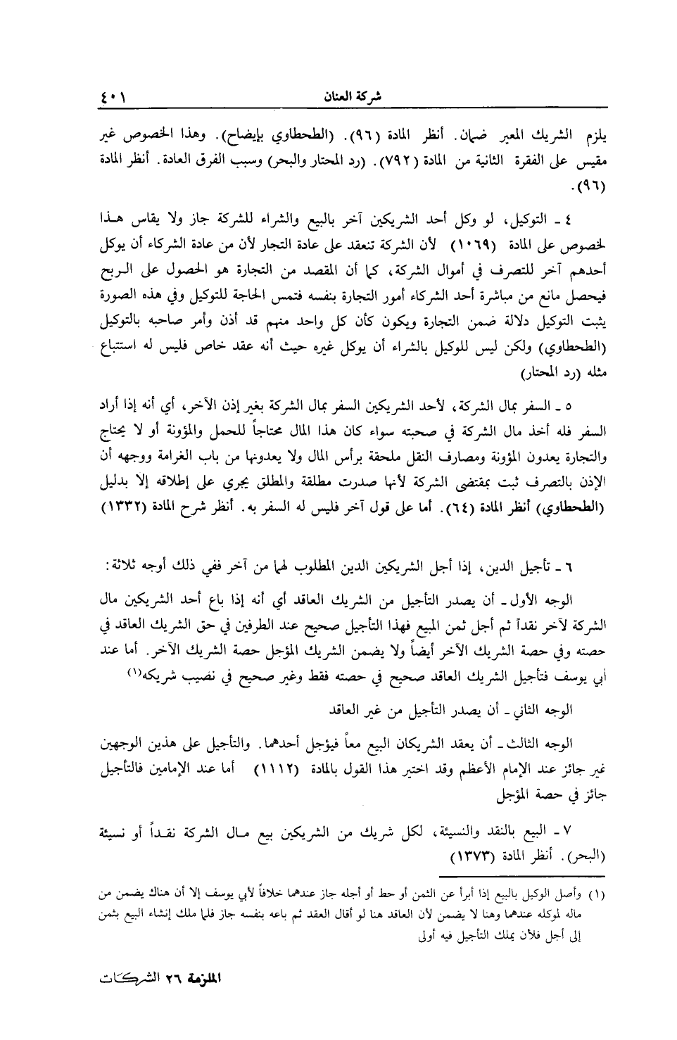 7 - الْبَيْعُ بِالنَّقْدِ وَالنَّسِيئَةِ، لِكُلِّ شَرِيكٍ مِنْ الشَّرِيكَيْنِ بَيْعُ مَالِ الشَّرِكَةِ نَقْدًا أَوْ نَسِيئَةً (الْبَحْرُ) . اُنْظُرْ الْمَادَّةَ (1373)