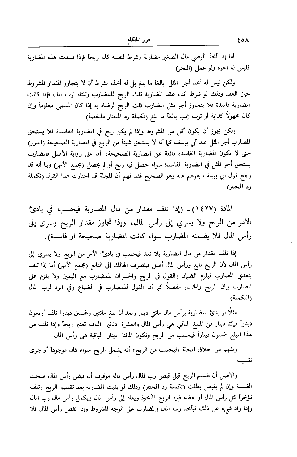 [ (الْمَادَّةُ 1427) إذَا تَلِفَ مِقْدَارٌ مِنْ مَالِ الْمُضَارَبَةِ]