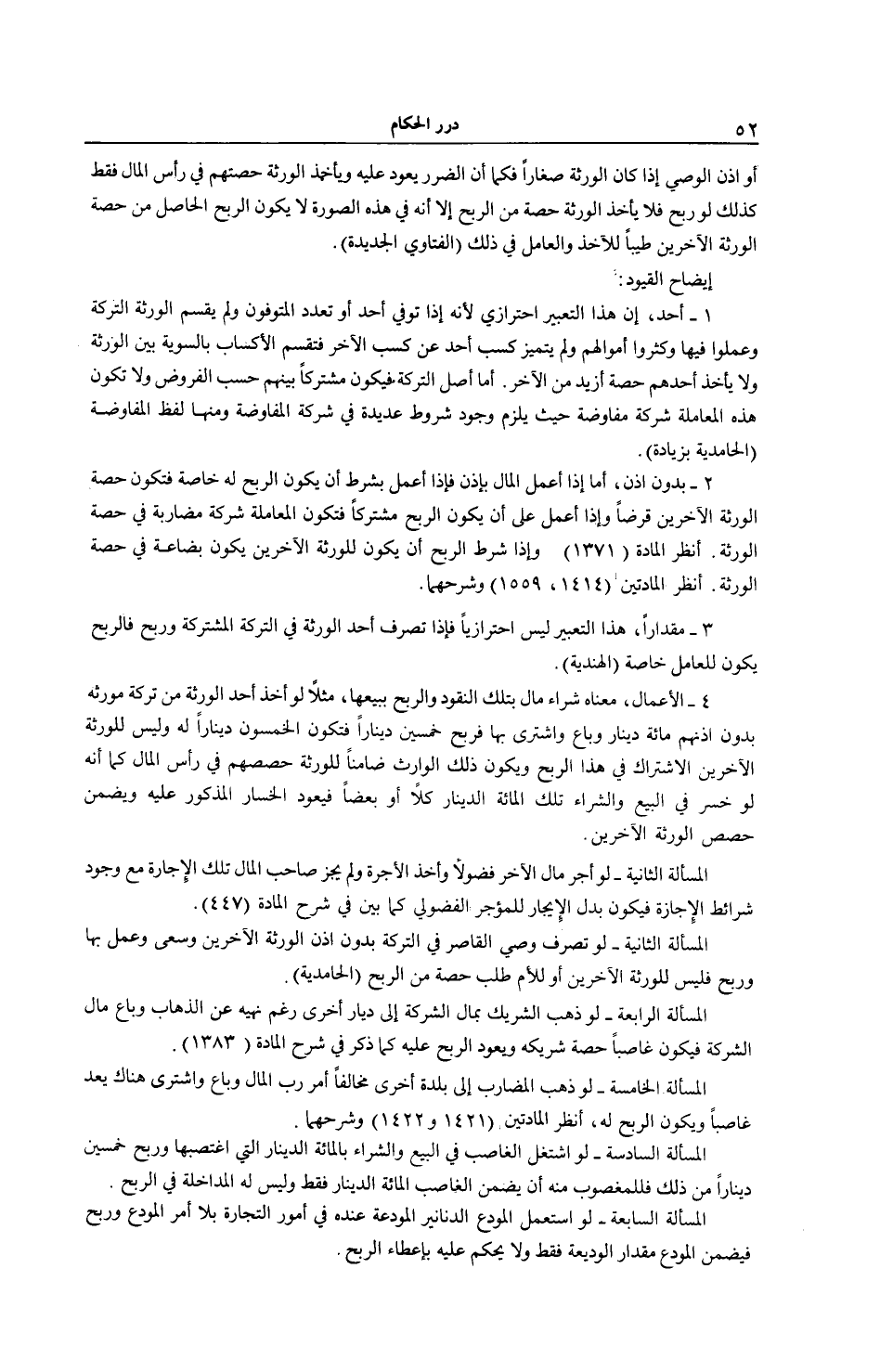 2 - بِدُونِ إذْنٍ، أَمَّا إذَا أَعْمَلَ الْمَالَ بِإِذْنٍ فَإِذَا أَعْمَلَ بِشَرْطِ أَنْ يَكُونَ الرِّبْحُ لَهُ خَاصَّةً فَتَكُونُ حِصَّةُ الْوَرَثَةِ الْآخَرِينَ قَرْضًا وَإِذَا أَعْمَلَ عَلَى أَنْ يَكُونَ الرِّبْحُ مُشْتَرَكًا فَتَكُونُ الْمُعَامَلَةُ شَرِكَةَ مُضَارَبَةٍ فِي حِصَّةِ الْوَرَثَةِ. اُنْظُرْ الْمَادَّةَ (1371) وَإِذَا شَرَطَ الرِّبْحَ أَنْ يَكُونَ لِلْوَرَثَةِ الْآخَرِينَ يَكُونُ بِضَاعَةً فِي حِصَّةِ الْوَرَثَةِ. اُنْظُرْ الْمَادَّتَيْنِ (4 1 4 1، 559 1) وَشَرْحِهِمَا.