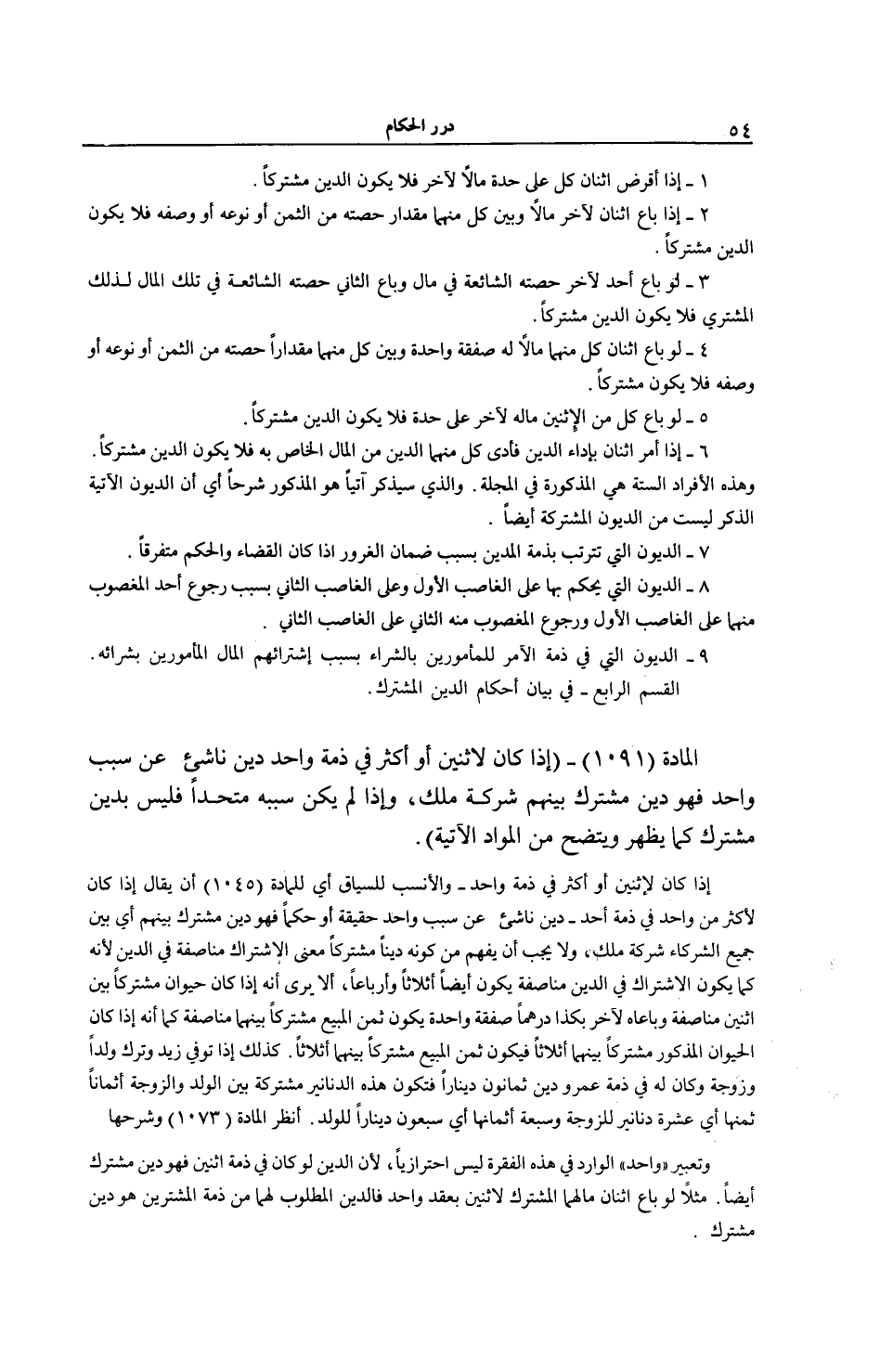 وَهَذِهِ الْأَفْرَادُ السِّتَّةُ هِيَ الْمَذْكُورَةُ فِي الْمَجَلَّةِ وَاَلَّذِي سَيُذْكَرُ آتَيَا هُوَ الْمَذْكُورُ شَرْحًا أَيْ أَنَّ الدُّيُونَ الْآتِيَةَ الذِّكْرِ لَيْسَتْ مِنْ الدُّيُونِ الْمُشْتَرَكَةِ أَيْضًا.