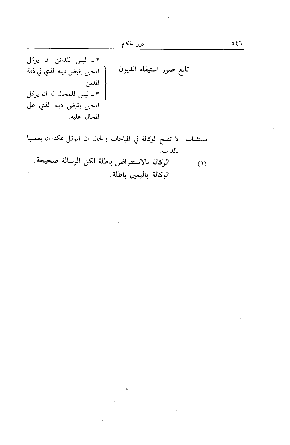 (1) الْوَكَالَةُ بِالِاسْتِقْرَاضِ بَاطِلَةٌ لَكِنَّ الرِّسَالَةَ صَحِيحَةٌ. الْوَكَالَةُ بِالْيَمِينِ بَاطِلَةٌ.