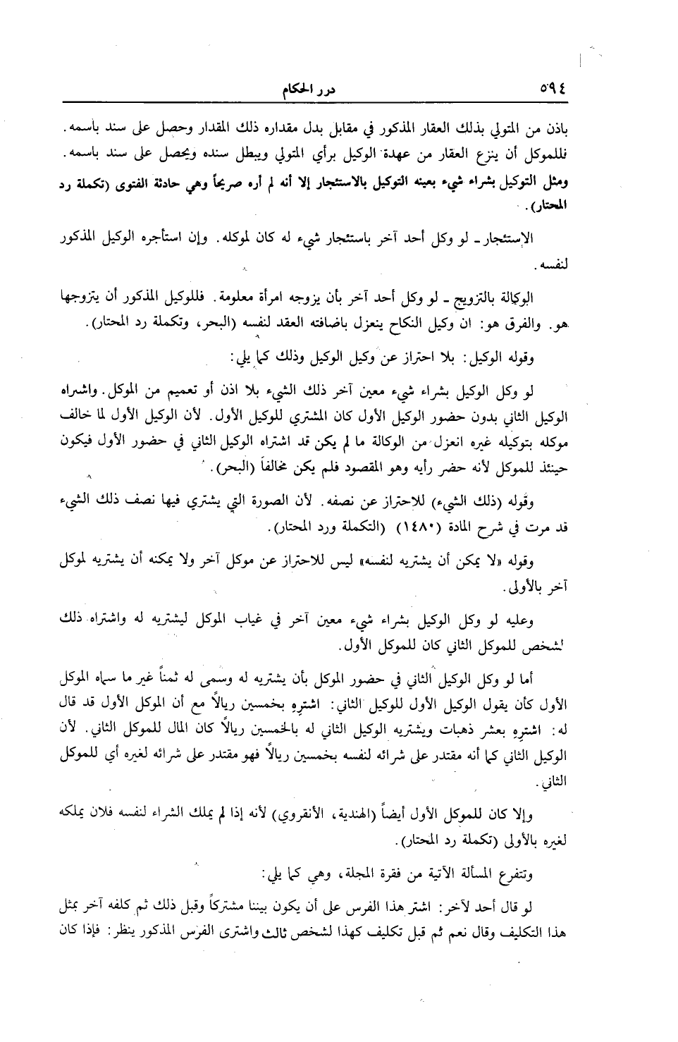 بِإِذْنٍ مِنْ الْمُتَوَلِّي بِذَلِكَ الْعَقَارِ الْمَذْكُورِ فِي مُقَابِلِ بَدَلٍ مِقْدَارُهُ ذَلِكَ الْمِقْدَارَ وَحَصَلَ عَلَى سَنَدٍ بِاسْمِهِ فَلِلْمُوَكِّلِ أَنْ يَنْزِعَ الْعَقَارَ مِنْ عُهْدَةِ الْوَكِيلِ بِرَأْيِ الْمُتَوَلِّي وَيَبْطُلُ سَنَدُهُ وَيَحْصُلُ عَلَى سَنَدٍ بِاسْمِهِ. وَمِثْلُ التَّوْكِيلِ بِشِرَاءِ شَيْءٍ بِعَيْنِهِ التَّوْكِيلُ بِالِاسْتِئْجَارِ إلَّا أَنَّهُ لَمْ أَرَهُ صَرِيحًا وَهِيَ حَادِثَةُ الْفَتْوَى (تَكْمِلَةُ رَدِّ الْمُحْتَارِ) .