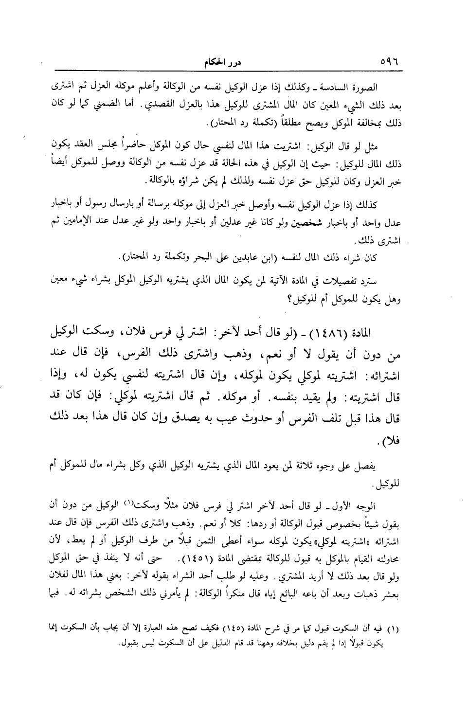 [ (الْمَادَّةُ 1486) قَالَ أَحَدٌ لِآخَرَ اشْتَرِ لِي فَرَسَ فُلَانٍ وَسَكَتَ الْوَكِيلُ وَذَهَبَ وَاشْتَرَى ذَلِكَ الْفَرَسَ]