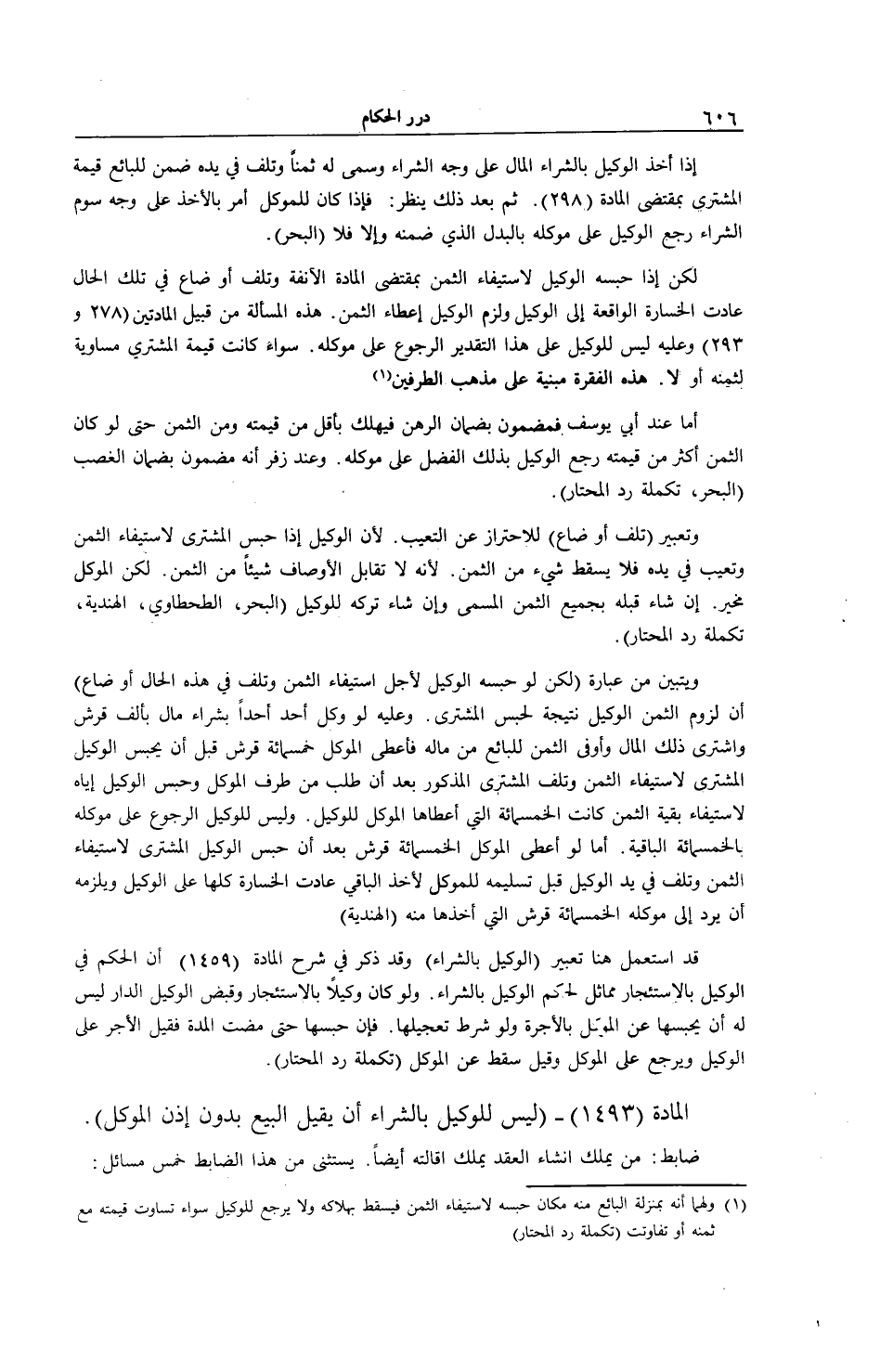 [ (الْمَادَّةُ 1493) لَيْسَ لِلْوَكِيلِ بِالشِّرَاءِ أَنْ يُقِيلَ الْبَيْعَ بِدُونِ إذْنِ الْمُوَكِّلِ]
