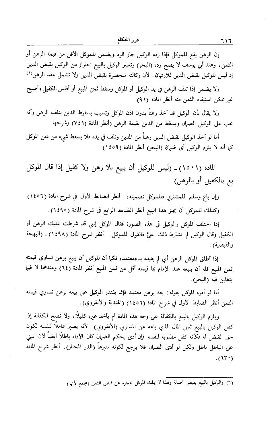 [ (الْمَادَّةُ 1501) لَيْسَ لِلْوَكِيلِ أَنْ يَبِيعَ بِلَا رَهْنٍ وَلَا كَفِيلٍ]