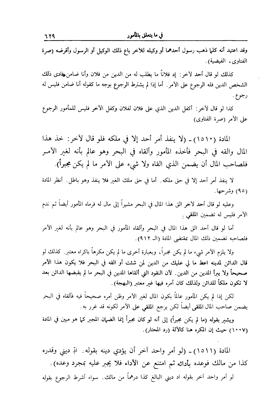 [ (الْمَادَّةُ 1511) لَوْ أَمَرَ وَاحِدٌ آخَرَ أَنْ يُؤَدِّيَ دَيْنَهُ]