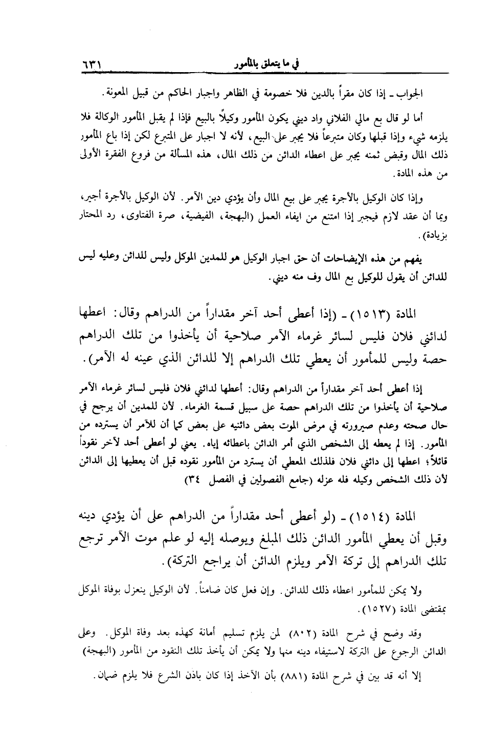 [ (الْمَادَّةُ 1513) إذَا أَعْطَى أَحَدٌ آخَرَ مِقْدَارًا مِنْ الدَّرَاهِمِ وَقَالَ أَعْطِهَا لِدَائِنِي فُلَانٍ]