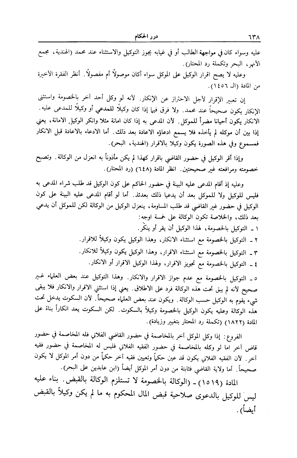 [ (الْمَادَّةُ 1519) الْوَكَالَةُ بِالْخُصُومَةِ لَا تَسْتَلْزِمُ الْوَكَالَةَ بِالْقَبْضِ]
