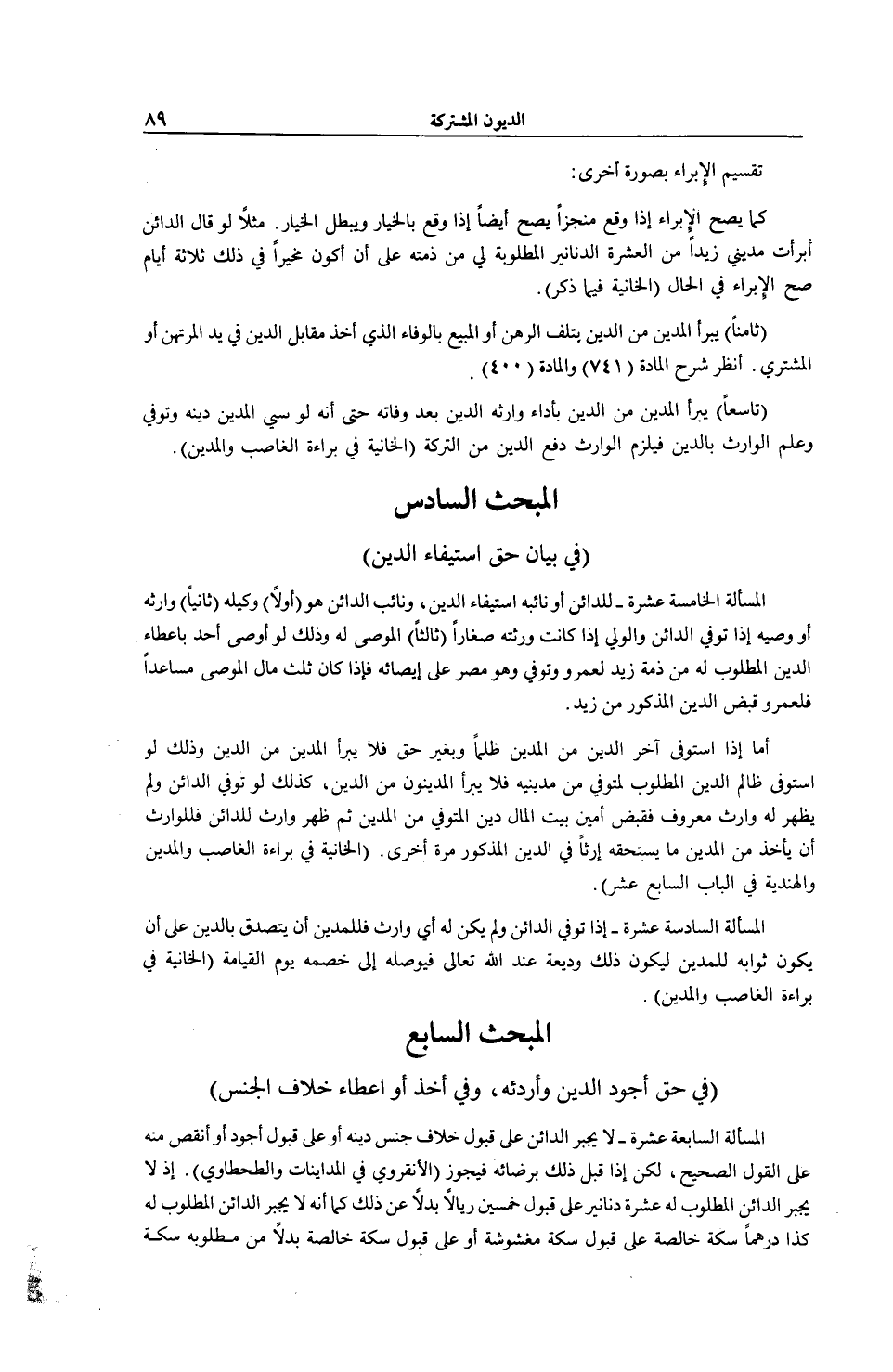 الْمَبْحَثُ السَّادِسُ (فِي بَيَانِ حَقِّ اسْتِيفَاءِ الدَّيْنِ) .