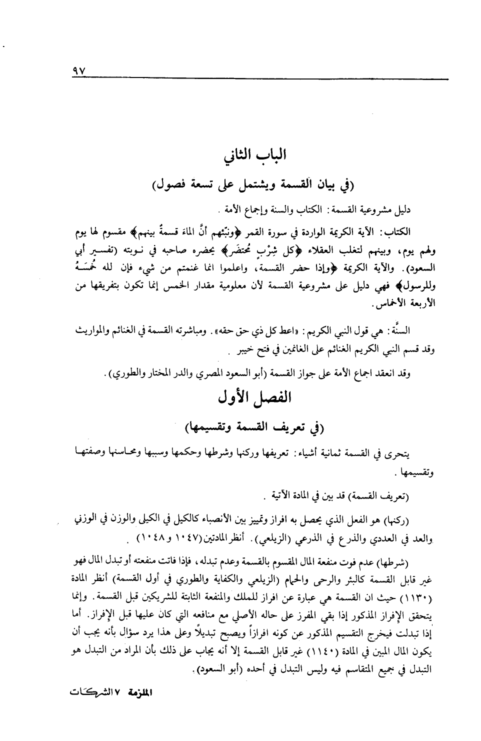 [بَابٌ فِي بَيَانِ الْقِسْمَةِ وَيَشْتَمِلُ عَلَى تِسْعَةِ فُصُولٍ]
