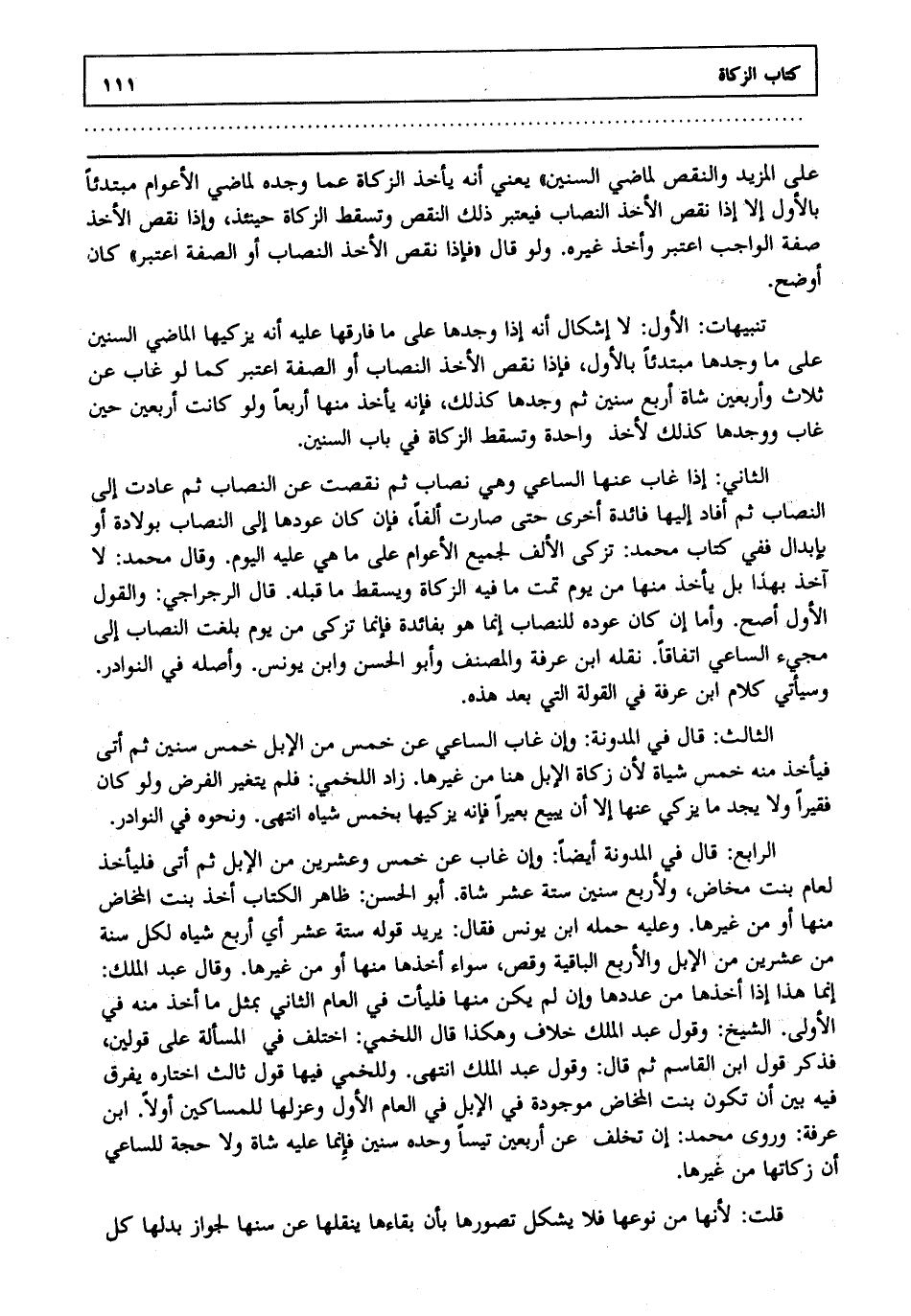 تنبيهات: الأول: لا إشكال أنه إذا وجدها على ما فارقها عليه أنه يزكيها الماضي السنين على ما وجدها مبتدئا بالأول فإذا نقص الأخذ النصاب أو الصفة اعتبر كما لو غاب عن ثلاث وأربعين شاة أربع سنين ثم وجدها كذلك فإنه يأخذ منها أربعا ولو كانت أربعين حين غاب ووجدها كذلك لأخذ واحدة وتسقط الزكاة في باب السنين.