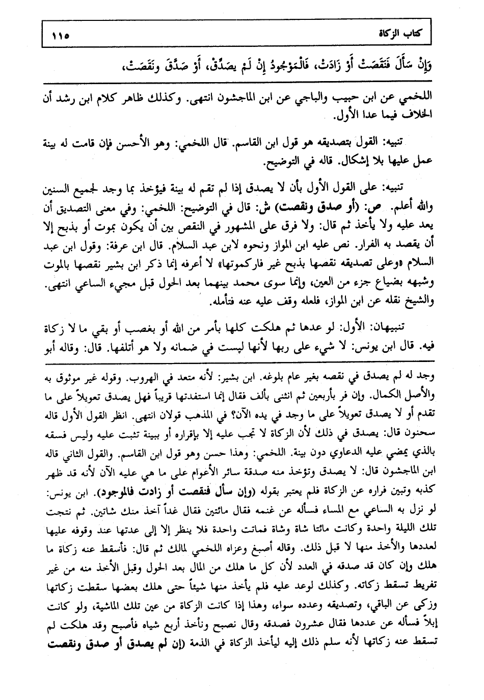 تنبيهان: الأول: لو عدها ثم هلكت كلها بأمر من الله أو بغصب أو بقي ما لا زكاة فيه قال ابن يونس: لا شيء على ربها لأنها ليست في ضمانه ولا هو أتلفها قال وقاله أبو