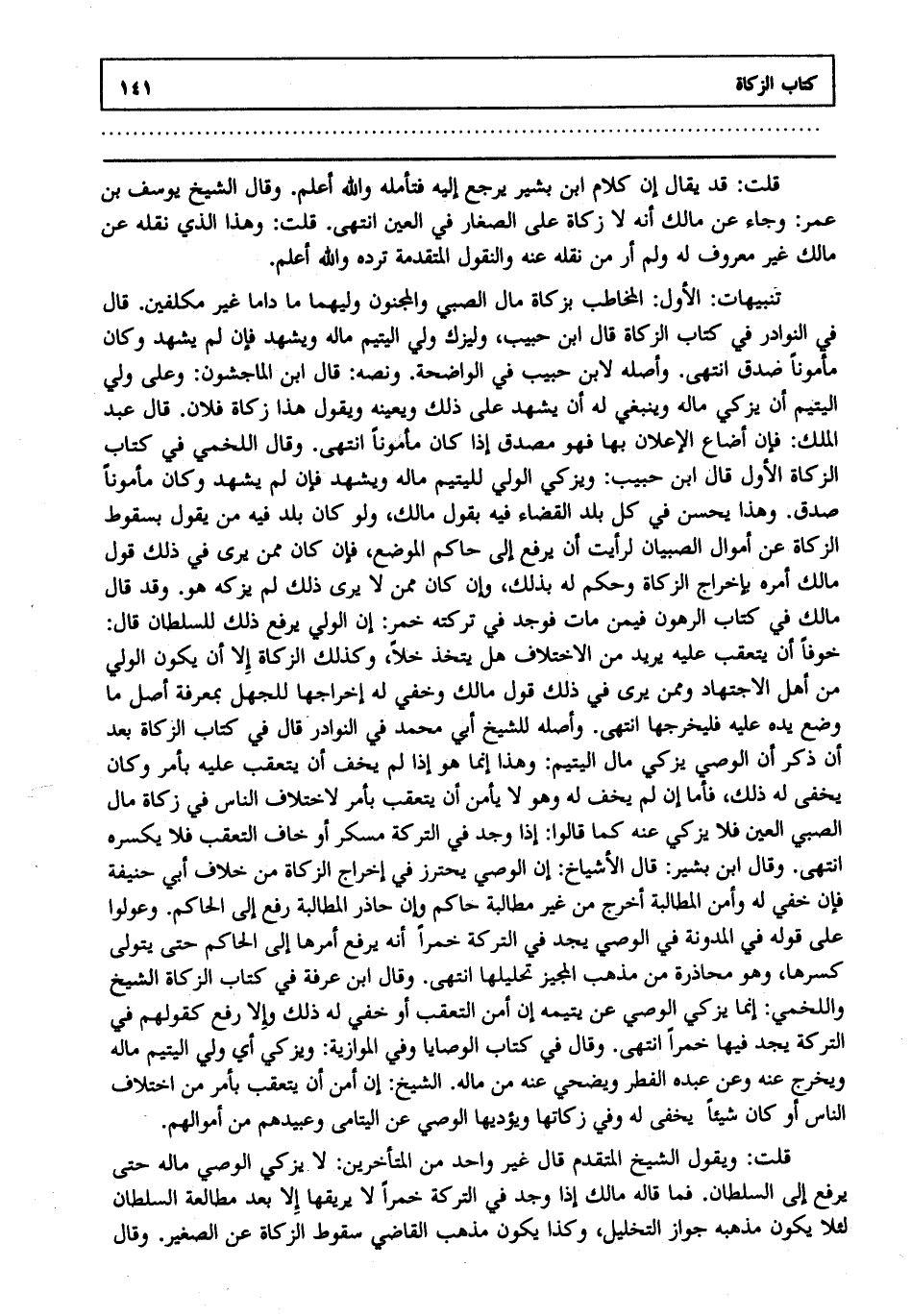 قلت: قد يقال إن كلام ابن بشير يرجع إليه فتأمله والله أعلم. وقال الشيخ يوسف بن عمر وجاء عن مالك أنه لا زكاة على الصغار في العين انتهى. قلت: وهذا الذي نقله عن مالك غير معروف له ولم أر من نقله عنه والنقول المتقدمة ترده والله أعلم.