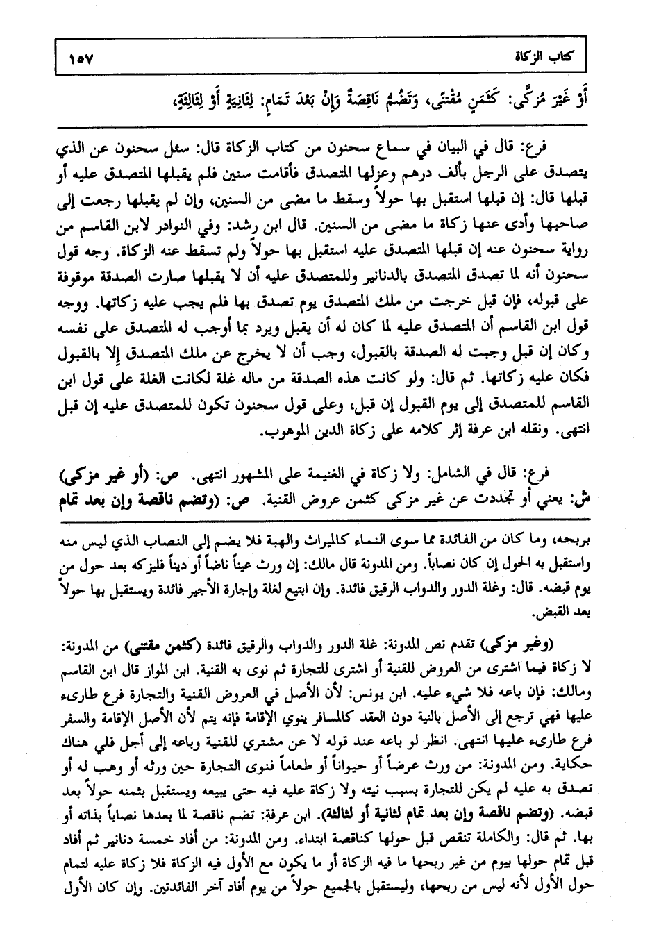 فرع: قال في الشامل: ولا زكاة في الغنيمة على المشهور انتهى. ص: "أو غير مزكى". ش: يعني أو تجددت عن غير مزكى كثمن عروض القنية. ص: "وتضم ناقصة وإن بعد تمام