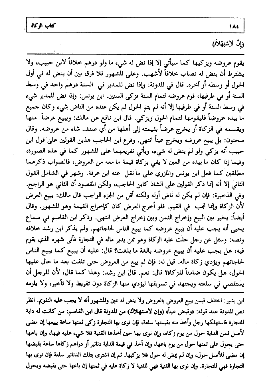 يقوم عروضه ويزكيها كما سيأتي إلا إذا نض له شيء ما ولو درهم خلافا لابن حبيب ولا يشترط أن ينض له نصاب خلافا لأشهب وعلى المشهور فلا فرق بين أن ينض له في أول الحول أو وسطه أو آخره قال في المدونة وإذا نض للمدير في السنة درهم واحد في وسط السنة أو في طرفيها قوم عروضه لتمام السنة فزكى السنين ابن يونس وإذا نض للمدير شيء في وسط السنة أو في طرفيها إلا أنه لم يتم الحول لم يكن عنده من الناض شيء وكان جميع ما بيده عروضا فليقومها لتمام الحول ويزكي قال ابن نافع عن مالك ويبيع عرضا منها ويقسمه في الزكاة أو يخرج عرضا بقيمته إلى أهلها من أي صنف شاء من عروضه وقال سحنون بل يبيع عروضه ويخرج عينا انتهى. وفرع ابن الحاجب هذين القولين على قول ابن حبيب أنه يزكي ولو لم ينض له شيء ويأتي تفريعهما على المشهور كما في هذه الصورة وفيما إذا كان ما بيده من العين لا يفي بزكاة قيمة ما معه من العروض فالصواب ذكرهما مطلقين كما فعل ابن يونس و المازري على ما نقل عنه ابن عرفة وشهر في الشامل القول الثاني إلا أنه إنما ذكر القولين على الشاذ كابن الحاجب ولكن المقصود أن الثاني هو الراجح وفي الذخيرة فإن لم يكن له ناض أوله ولكنه أقل من الجزء الواجب قال مالك: يبيع العرض لأن الزكاة وإنما تجب في القيم فلو أخرج العرض كان كإخراج القيمة وهو المشهور وقال أيضا يخير بين البيع وإخراج الثمن وبين إخراج العرض انتهى. وذكر ابن القاسم في سماع يحيى أنه يجب عليه أن يبيع عروضه كما يبيع الناس لحاجاتهم ولم يذكر ابن رشد خلافه ونصه وسئل عن رجل حلت عليه الزكاة وهو ممن يدير ماله في التجارة فأتى شهره الذي يقوم فيه هل يجب عليه أن يبيع عروضه بالغة ما بلغت قال عليه أن يبيع كما يبيع الناس لحاجاتهم ويؤدي زكاة ماله قيل له فإن لم يبع من العروض حتى تلفت بعد ما حال عليها الحول هل يكون ضامنا للزكاة قال نعم قال ابن رشد: وهذا كما قال لأن للرجل أن يستقصي في سلعته ويجتهد في تسويقها ليؤدي منها الزكاة دون تفريط ولا تأخير ولا يلزمه