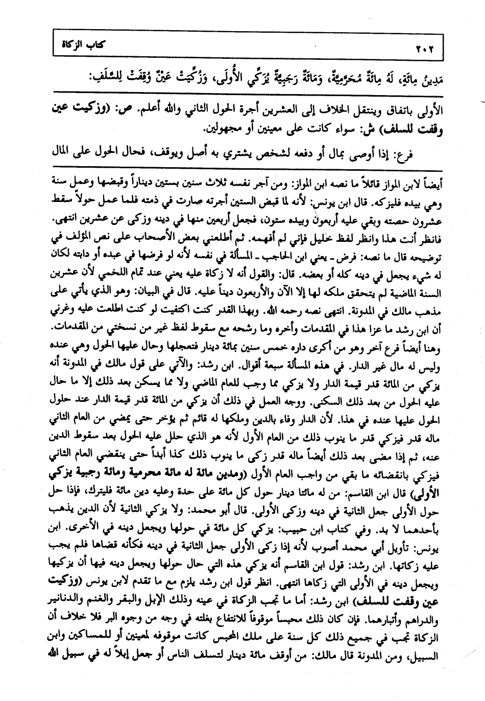 مدين مائة له مائة محرمية ومائة رجبية يزكي الأولى وزكيت عين وقفت للسلف