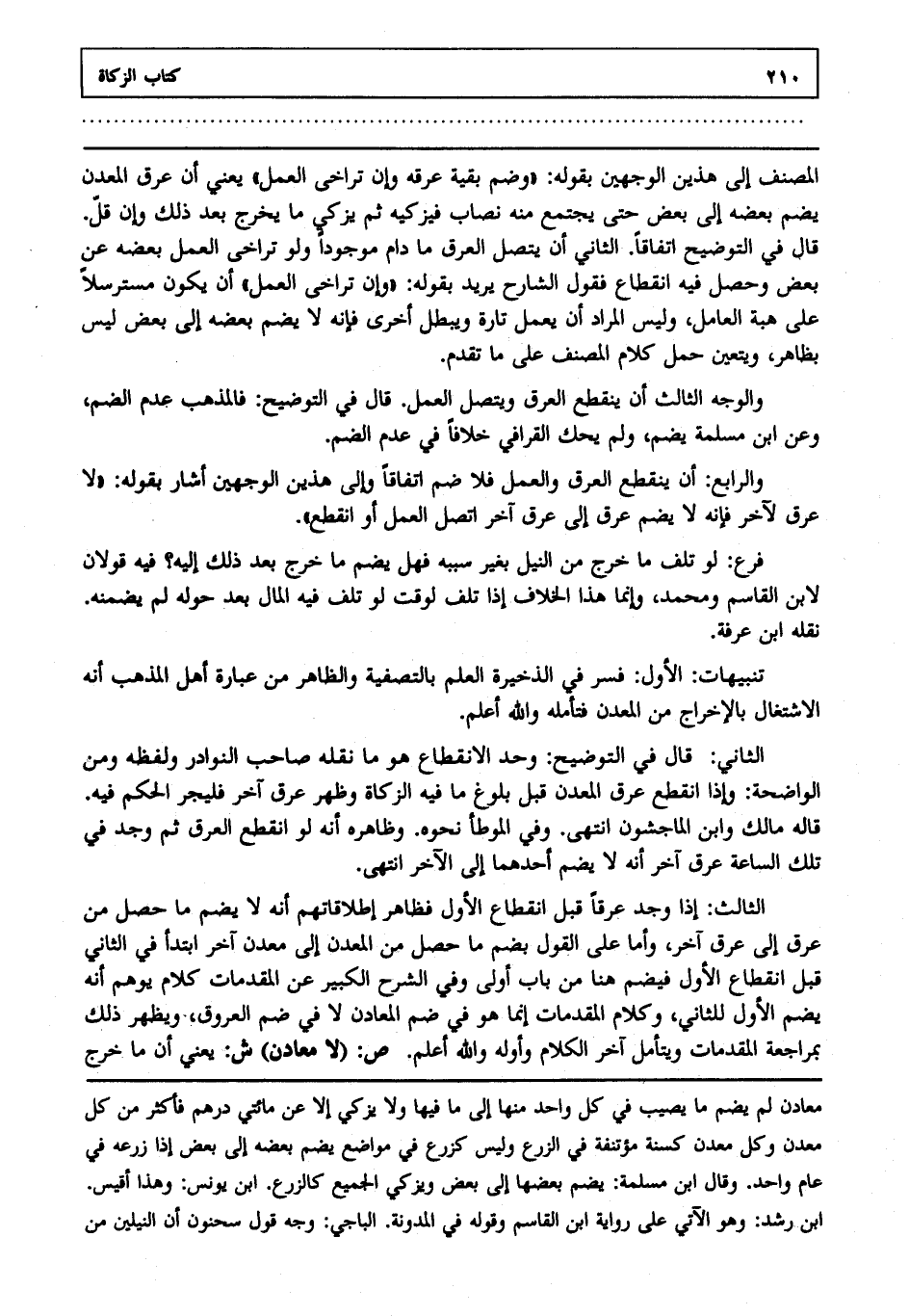 تنبيهات: الأول: فسر في الذخيرة العلم بالتصفية والظاهر من عبارة أهل المذهب أنه الاشتغال بالإخراج من المعدن فتأمله والله أعلم.