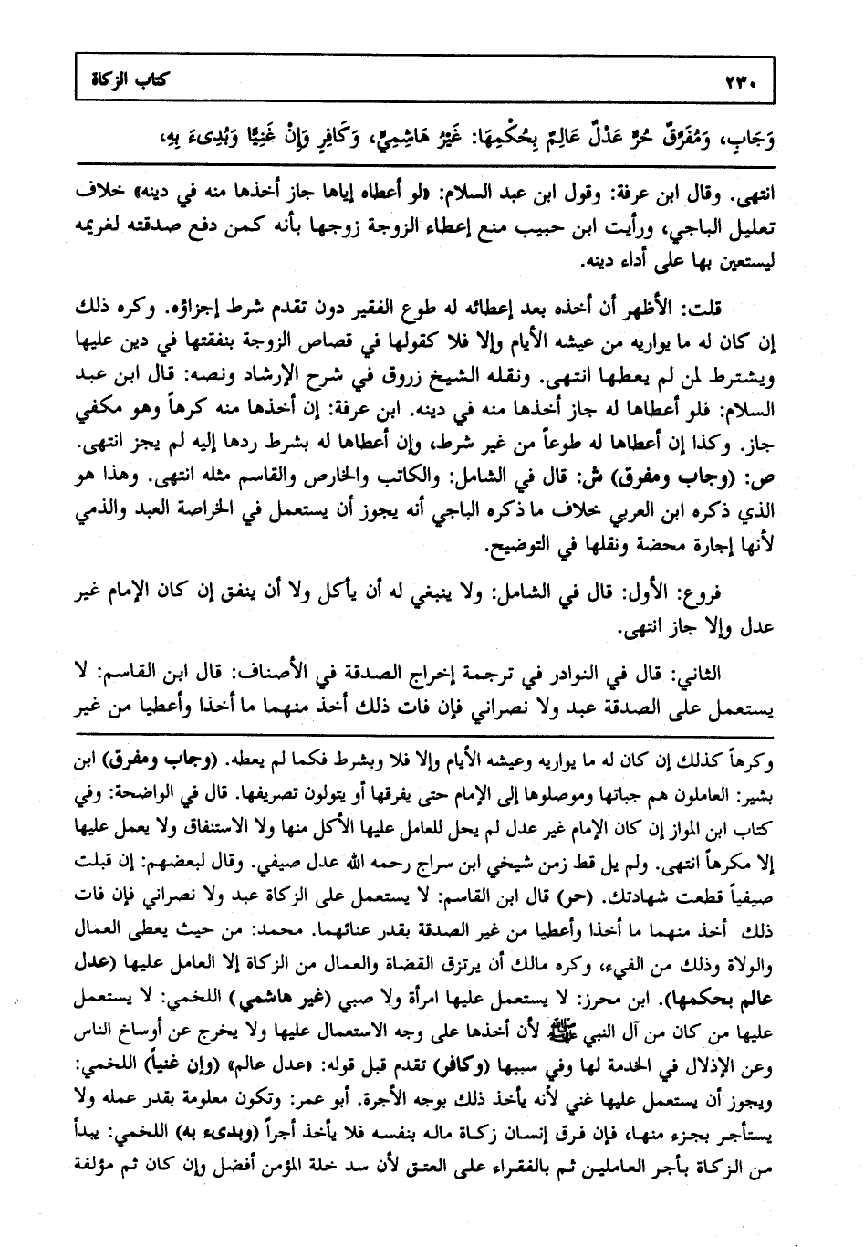 وجاب ومفر ق حر عدل عالم بحكمها غير هاشمي وكافر وإن غنياً وبدىء به ،