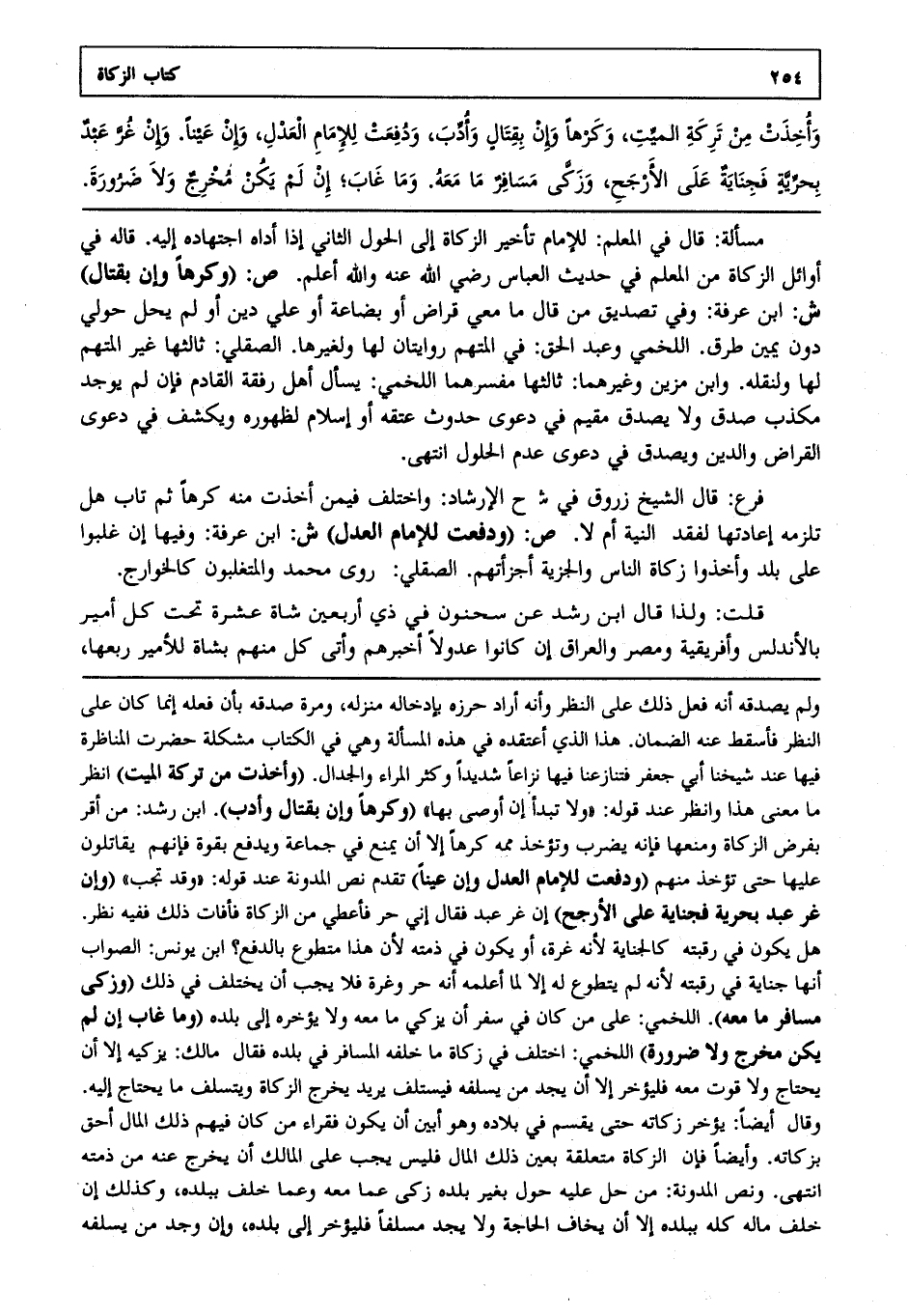 وأخذت من تركة الميت وكرها ًوإن بقتال وأدب ودفعت للإمام العدل وإن عيناً وإن غر عبد بحرية فجناية على الأرجح وزكى مسافر ما معه وما غاب إن لم يكن مخرج ولا ضرورة
