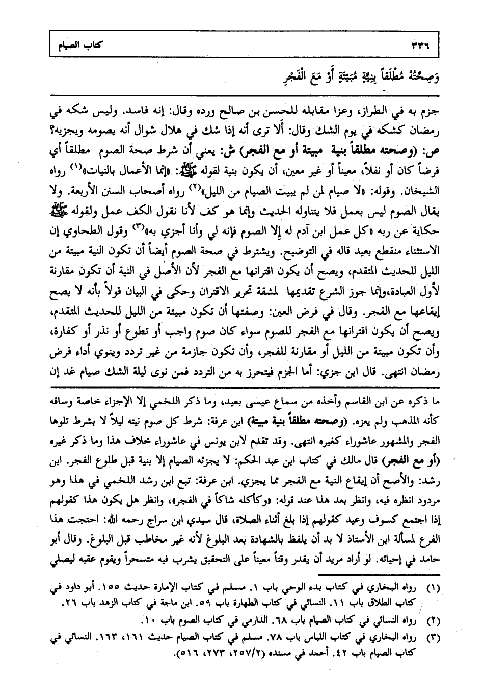 وصحته مطلقاًً بنية مبيتة أو مع الفجر