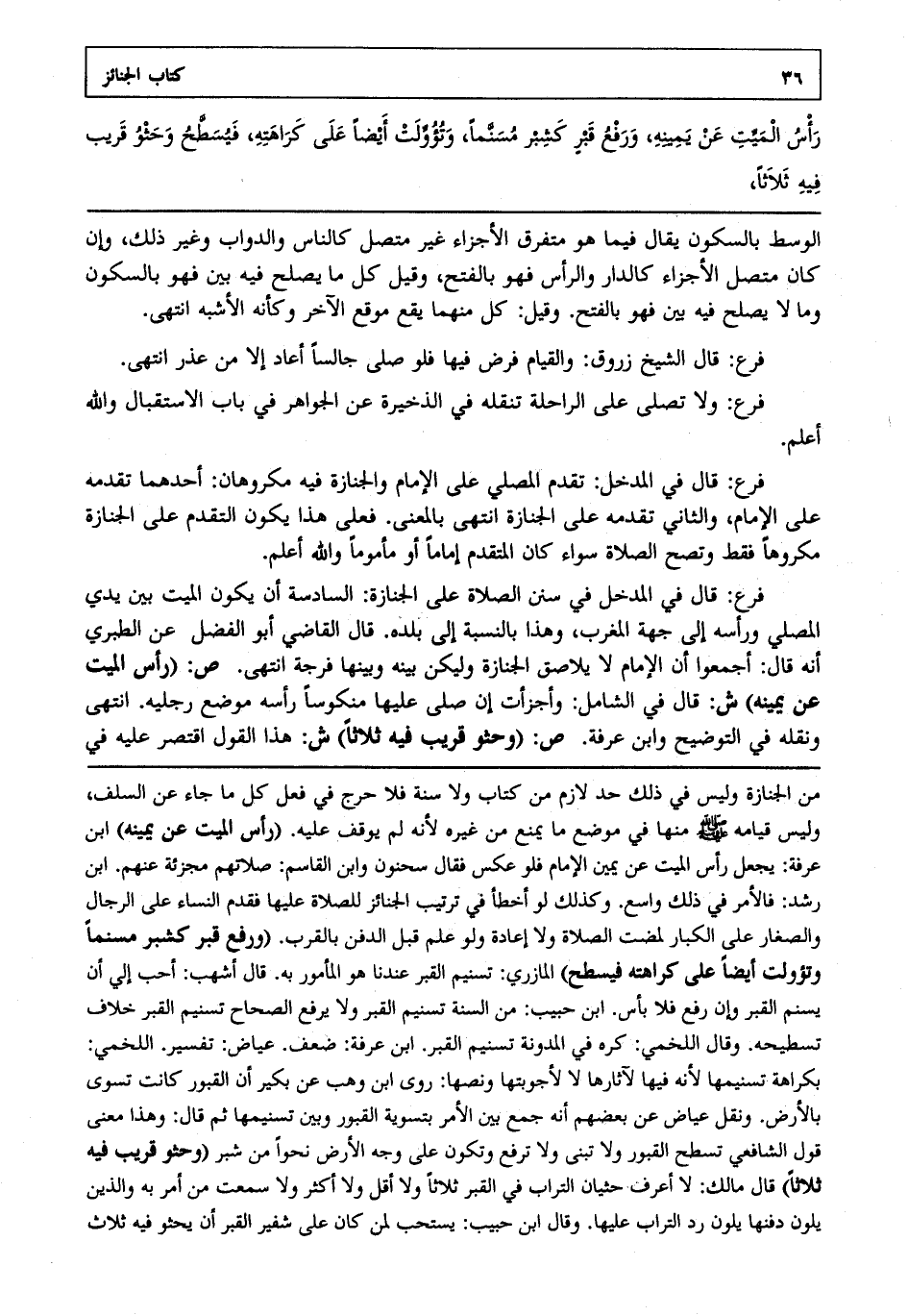 رأس الميت عن يمينه ورفع قبر كشبر مسنماً وتؤولت أيضاً على كراهته فيسطح وحثو قريب فيه ثلاثاً
