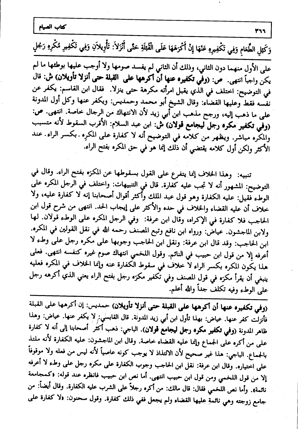 على الأول منهما دون الثاني وذلك أن الثاني لم يفسد صومها ولا أوجب عليها بوطئها ما لم يكن واجباانتهى. ص: "وفي تكفيره عنها إن أكرهها على القبلة حتى أنزلا تأويلان". ش: قال في التوضيح: اختلف في الذي يقبل امرأته مكرهة حتى ينزلا فقال ابن القاسم يكفر عن نفسه فقط وعليها القضاء وقال الشيخ أبو محمد وحمديس ويكفر عنها وكل أول المدونة على ما ذهب إليه ورجح مذهب ابن أبي زيد لأن الانتهاك من الرجال خاصة انتهى. ص: "وفي تكفير مكره رجل ليجامع قولان". ش: ابن عبد السلام الأقرب السقوط لأنه متسبب والمكره مباشر ويظهر من كلامه في التوضيح أنه لا كفارة على المكره بكسر الراء عند الأكثر ولكن أول كلامه يقتضي أن ذلك إنما هو في حق المكره بفتح الراء.
