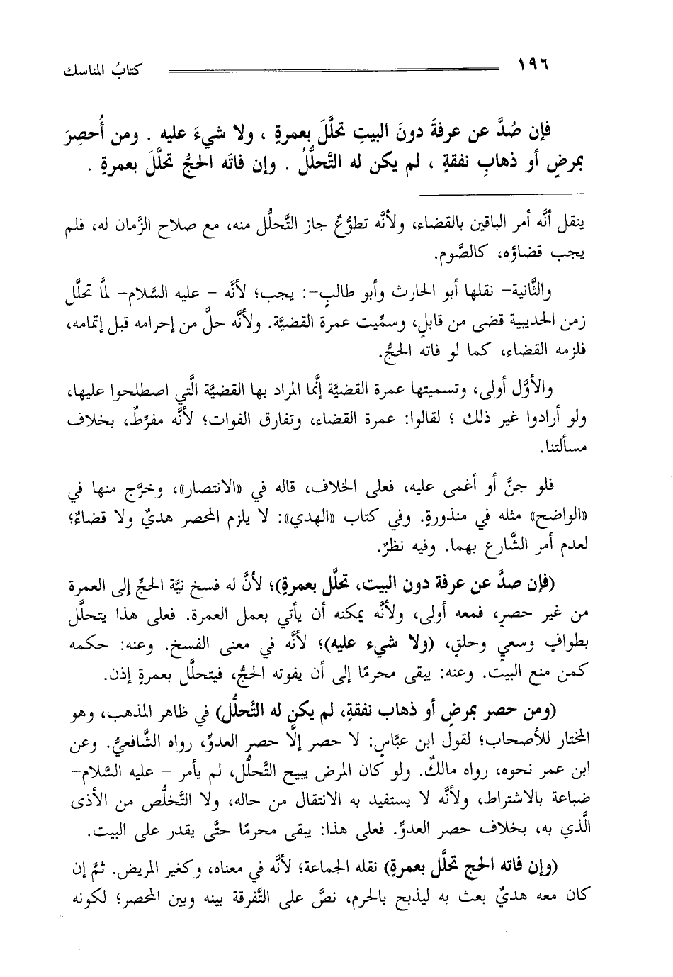 والأول أولى، وتسميتها عمرة القضية إنما المراد بها القضية التي اصطلحوا عليها ولو أرادوا غير ذلك لقالوا عمرة القضاء وتفارق الفوات لأنه مفرط بخلاف مسألتنا.