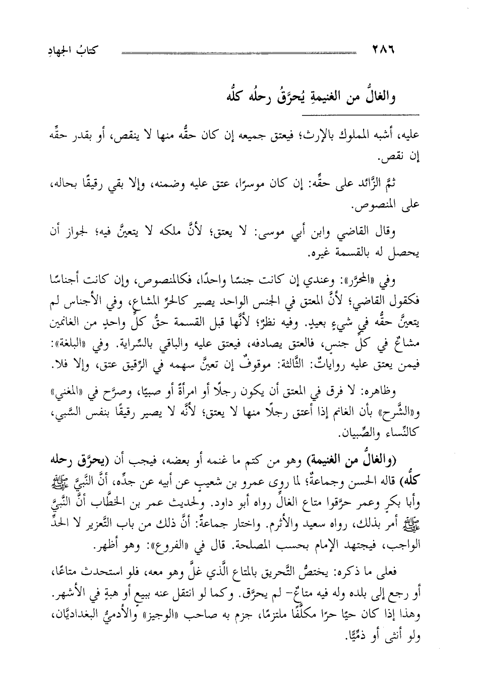 والغال من الغنيمة يحرق رحله كله