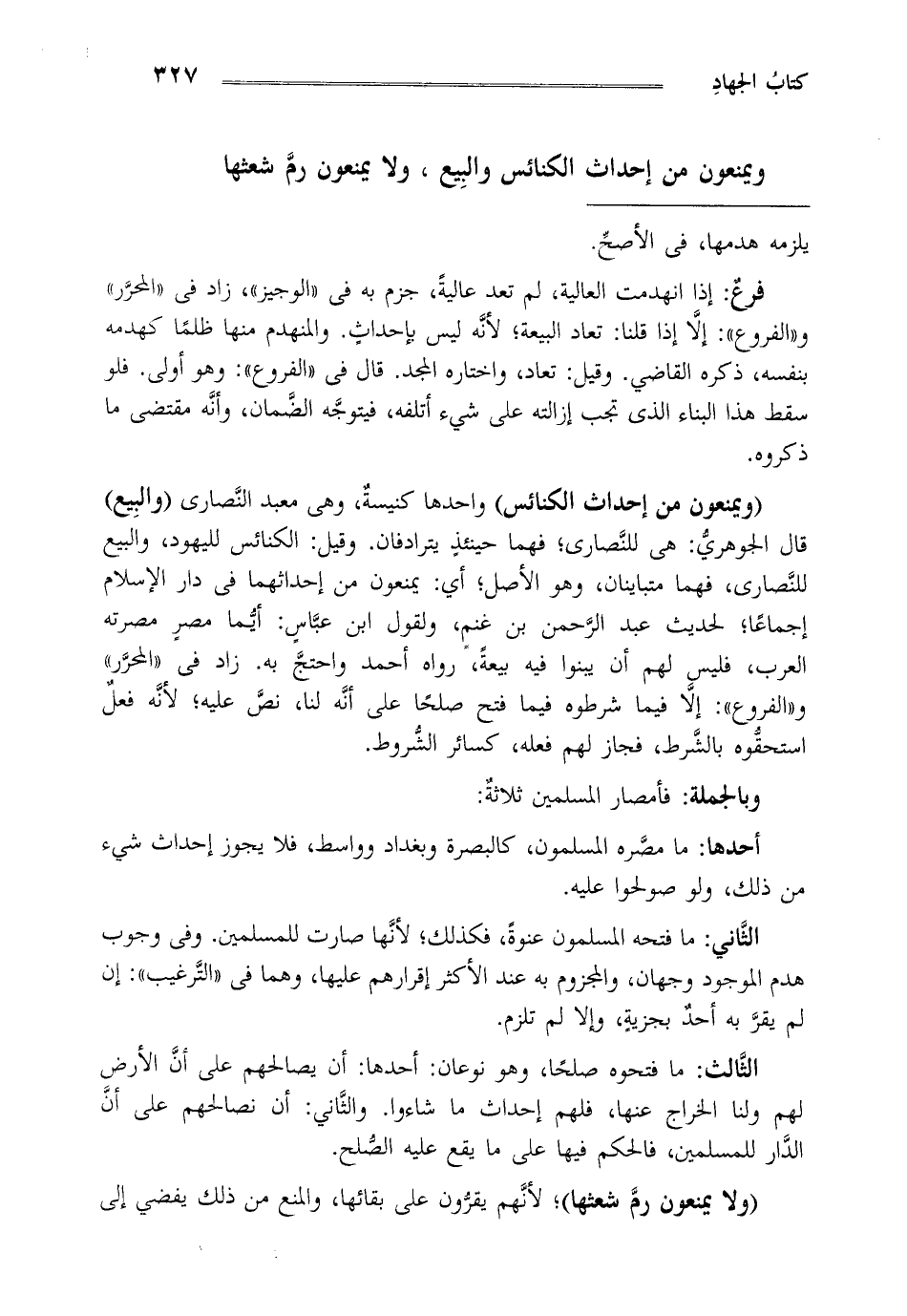 أحدها: ما مصره المسلمون كالبصرة وبغداد وواسط فلا يجوز إحداث شيء من ذلك ولو صولحوا عليه.