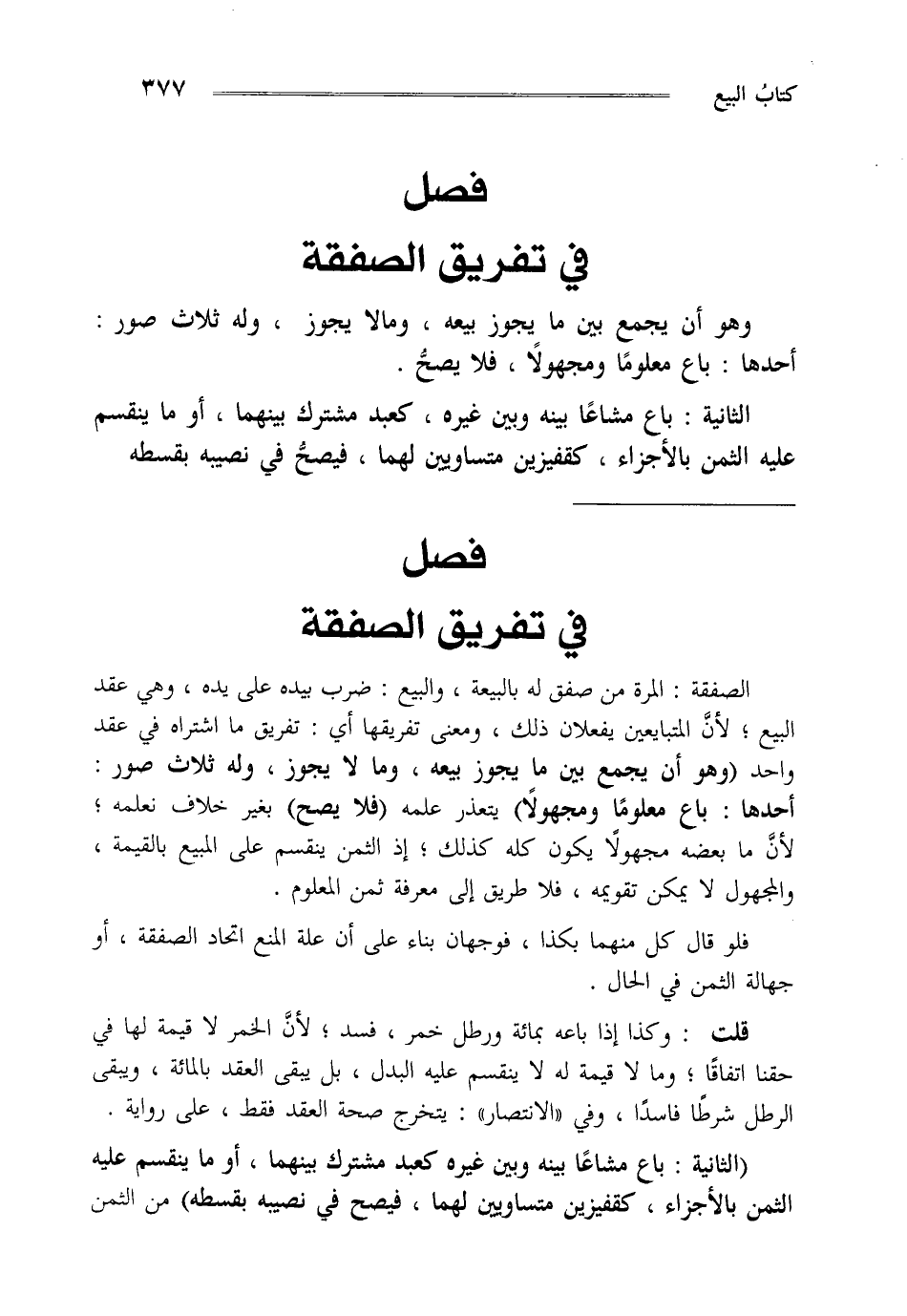 "الثانية: باع مشاعا بينه وبين غيره كعبد مشترك بينهما أو ما ينقسم عليه الثمن بالأجزاء كقفيزين متساويين لهما فيصح في نصيبه بقسطه" من الثمن