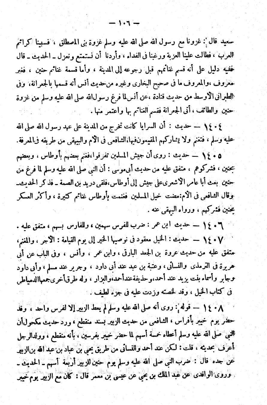 1406 - حديث بن عمر ضرب للفرس سهمين وللفارس بسهم متفق عليه