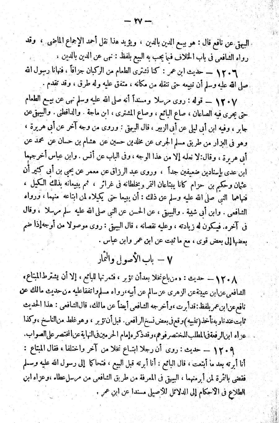 1208 - حديث من باع نخلا بعد أن تؤبر فثمرتها للبائع إلا أن يشترط المبتاع الشافعي عن بن عيينة عن الزهري عن سالم عن أبيه رواه مسلم واتفقا عليه من حديث مالك عن نافع عن بن عمر بلفظ قد أبرت وأخرجه الشافعي أيضا عن مالك قال الشافعي هذا الحديث ثابت عندنا وبه نأخذ تنبيه وقع في بعض نسخ الرافعي قبل أن تؤبر وهو غلط من الناسخ وكذا عزاه بن الرفعة في المطلب للمختصر فوهم وقد ذكره إمام الحرمين في النهاية عن المختصر على الصواب