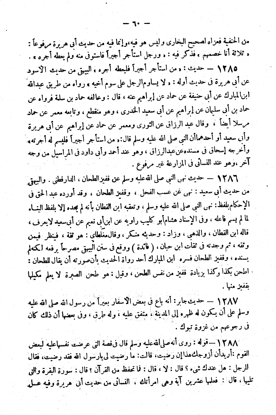 1285 - حديث من استأجر أجيرا فليعطه أجره البيهقي من حديث الأسود عن أبي هريرة في حديث أوله لا يساوم الرجل على سوم أخيه رواه من طريق عبد الله بن المبارك عن أبي حنيفة عن حماد عن إبراهيم عنه قال وخالفه حماد بن سلمة فرواه عن حماد بن أبي سليمان عن إبراهيم عن أبي سعيد الخدري وهو منقطع وتابعه معمر عن حماد مرسلا أيضا وقال عبد الرزاق عن الثوري ومعمر عن حماد عن إبراهيم عن أبي هريرة وأبي سعيد أو أحدهما أن النبي صلى الله عليه و سلم قال من استأجر أجيرا فليسم له أجرته وأخرجه إسحاق في مسنده عن عبد الرزاق وهو عند أحمد وأبي داود في المراسيل من وجه آخر وهو عند النسائي في المزارعة غير مرفوع