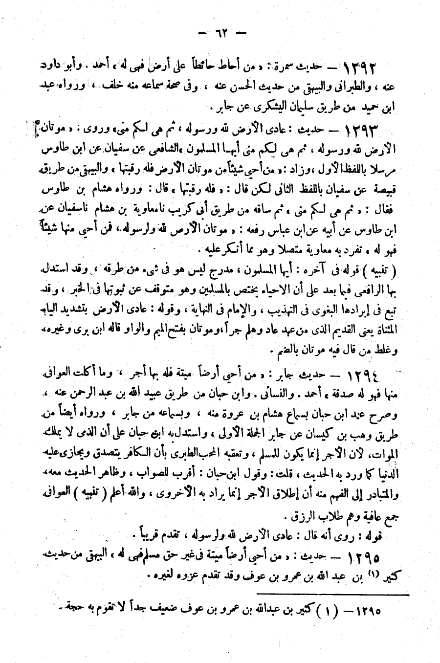 1295 - حديث من أحيى أرضا ميتة في غير حق مسلم فهي له البيهقي من حديث كثير 1 بن عبد الله بن عمرو بن عوف وقد تقدم عزوه لغيره