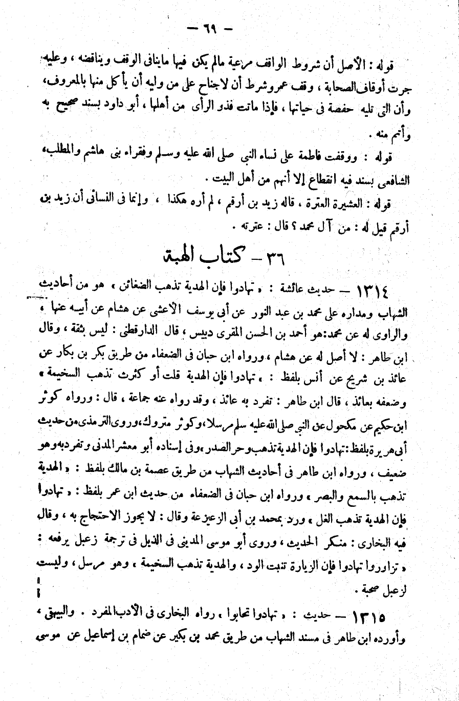 1315 - حديث تهادوا تحابوا رواه البخاري في الأدب المفرد والبيهقي وأورده بن طاهر في مسند الشهاب من طريق محمد بن بكير عن ضمام بن إسماعيل عن موسى