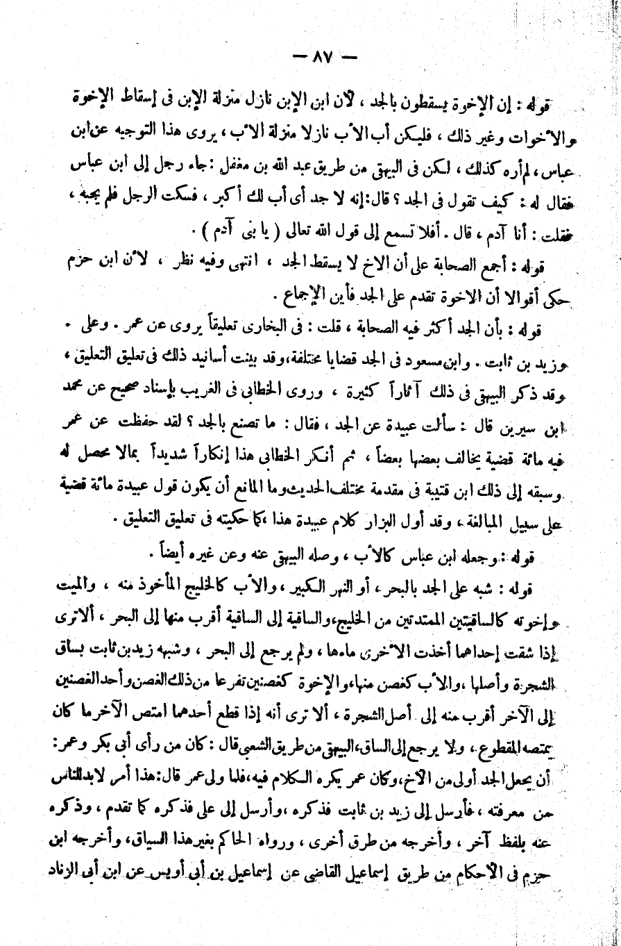 قوله أجمع الصحابة على أن الأخ لا يسقط الجد انتهى وفيه نظر لأن بن حزم حكى أقوالا أن الاخوة تقدم على الجد فأين الإجماع