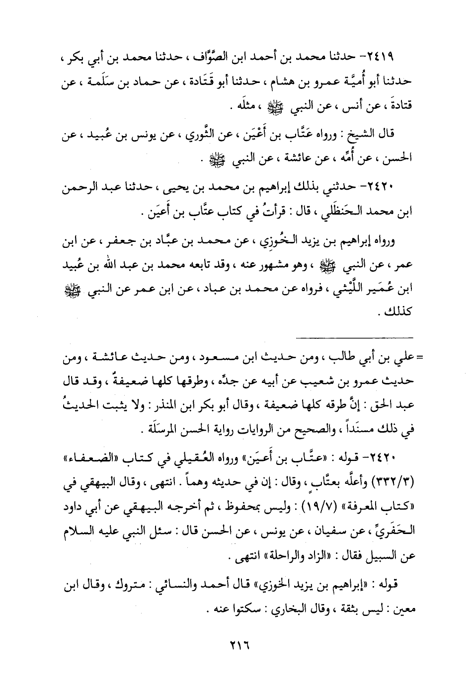 2420 - حَدَّثَنِي بِهِ إِبْرَاهِيمُ بْنُ مُحَمَّدِ بْنِ يَحْيَى , نا عَبْدُ الرَّحْمَنِ بْنُ مُحَمَّدٍ الْحَنْظَلِيُّ , قَالَ: قَرَأْتُ فِي كِتَابِ عَتَّابِ بْنِ أَعْيَنَ