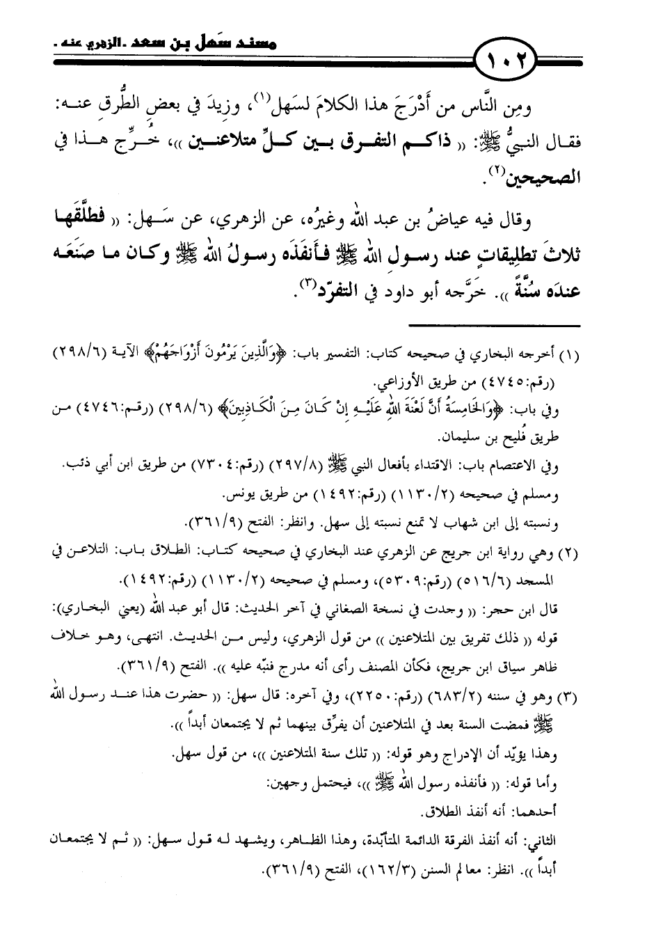 وهذا يؤيّد أن الإدراج وهو قوله: "تلك سنة المتلاعنين"، من قول سهل.