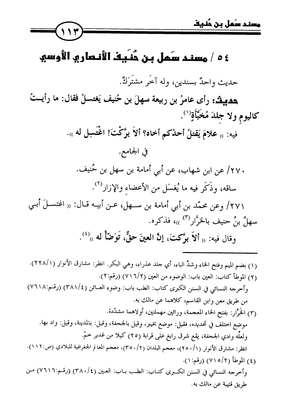 ٥٤/ مسند سَهل بن حُنَيف الأنصاري الأوسي