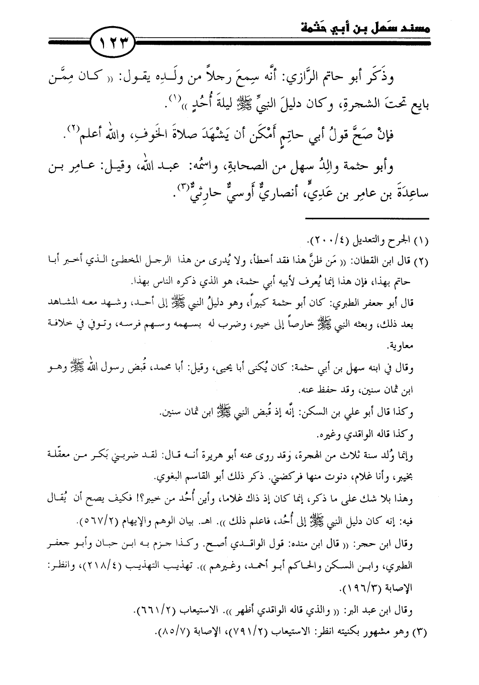 (٢) قال ابن القطان: "مَن ظنَّ هذا فقد أخطأ، ولا يُدرى من هذا الرجل المخطئ الذي أخبر أبا حاتم بهذا، فإن هذا إنما يُعرف لأبيه أبي حثمة، هو الذي ذكره الناس بهذا.