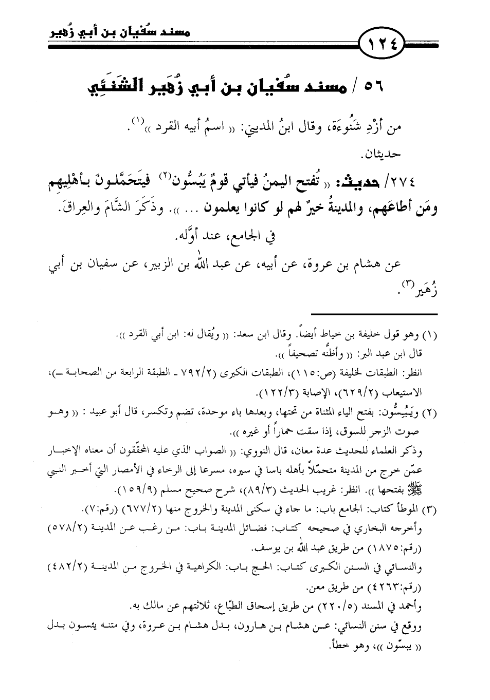 ٥٦ / مسند سُفيان بن أبي زُهَير الشَنَئِي