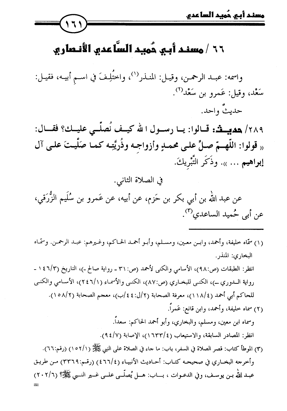 ٦٦ / مسند أبي حُميد السَّاعدي الأنصاري