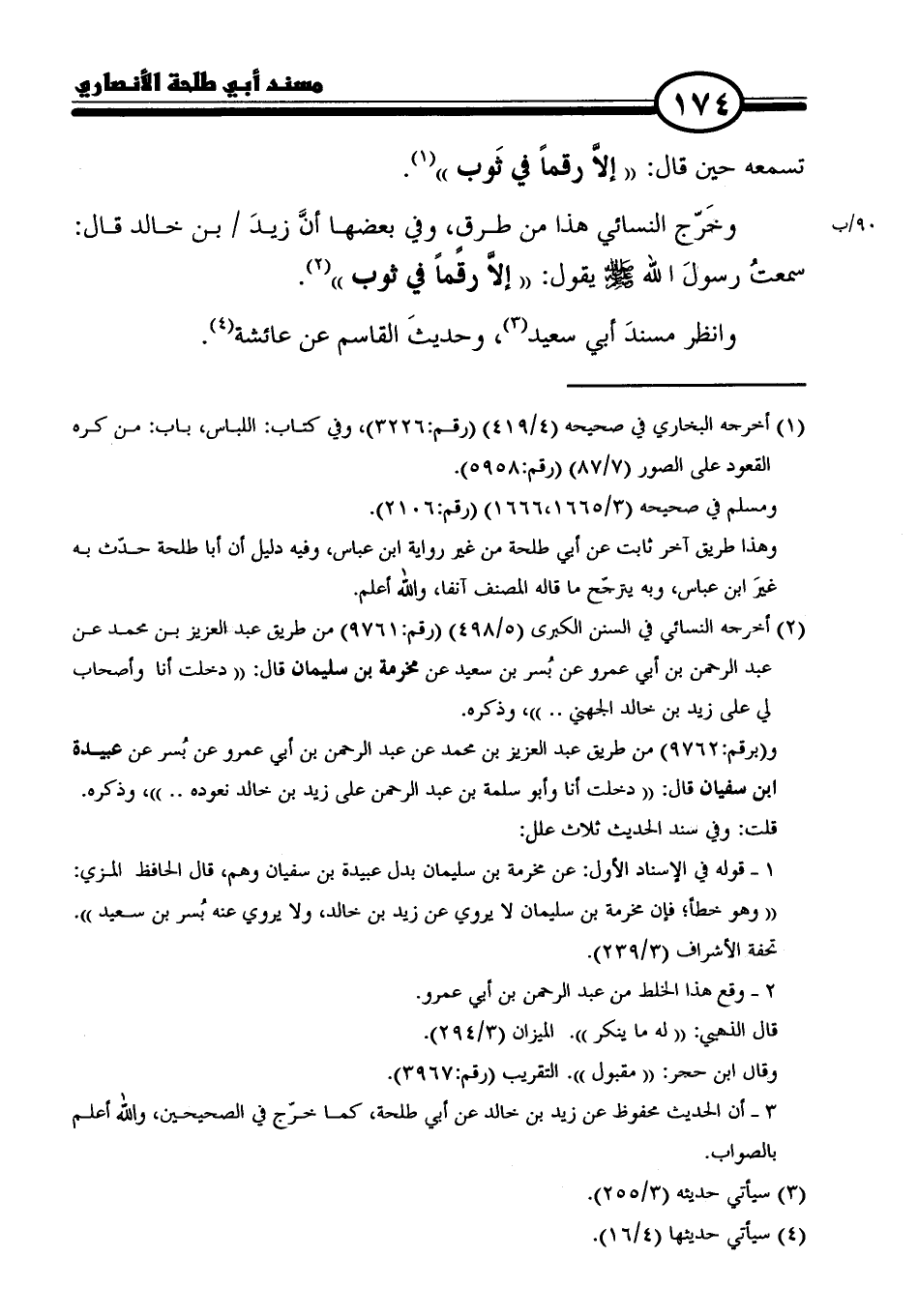 وخَرّج النسائي هذا من طرقٍ، وفي بعضها أنَّ زيدَ بن خالد قال: سمعتُ رسولَ الله - صلى الله عليه وسلم - يقول: "إلاَّ رقمًا في ثوب" (٢).