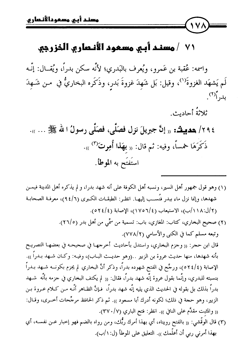 ٧١/ مسند أبي مسعود الأنصاري الخزرجي