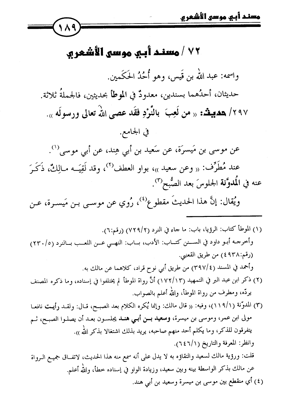 (١) الموطأ كتاب: الرؤيا، باب: ما جاء في النرد (٢/ ٧٢٩) (رقم: ٦).