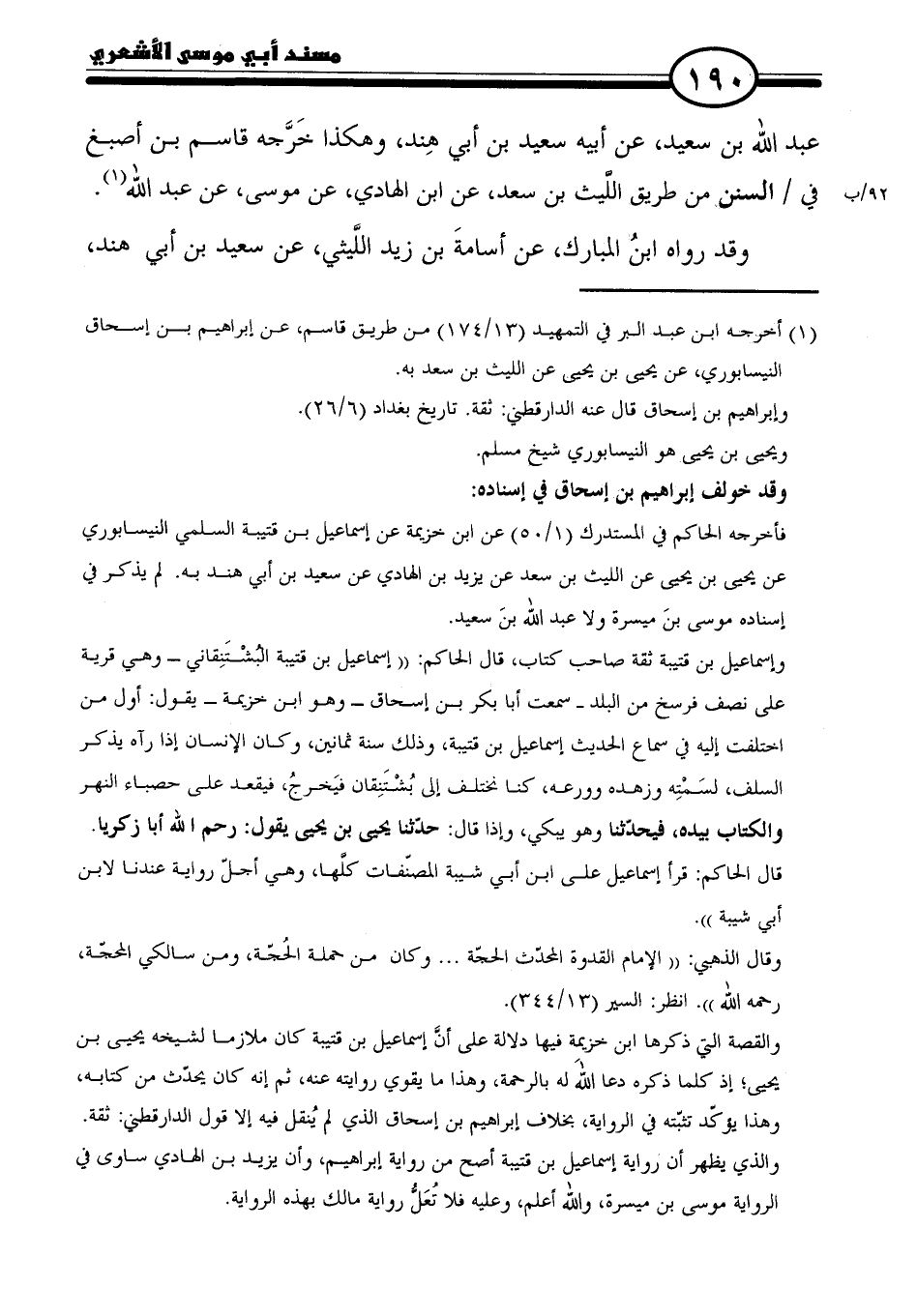 (١) أخرجه ابن عبد البر في التمهيد (١٣/ ١٧٤) من طريق قاسم، عن إبراهيم بن إسحاق النيسابوري، عن يحيى بن يحيى عن الليث بن سعد به.