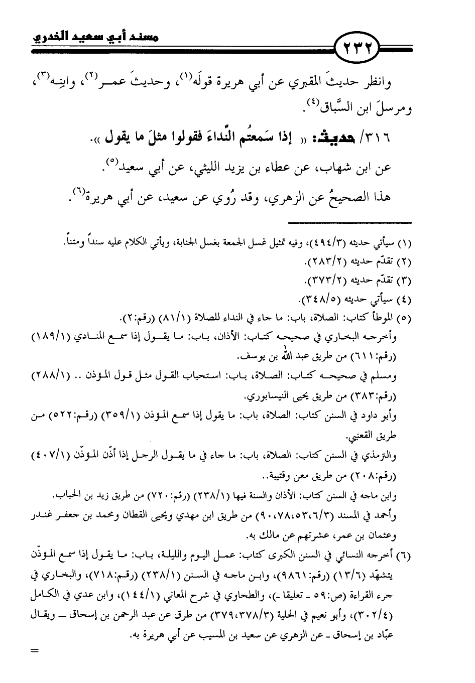 ٣١٦ / حديث: "إذا سَمعتم النِّداءَ فقولوا مثلَ ما يقول".