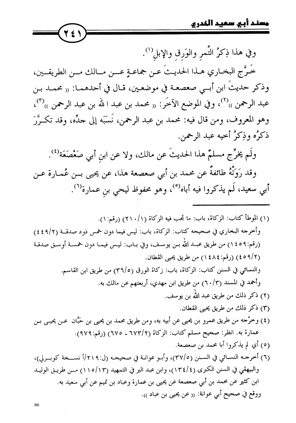 (٦) أخرجه النسائي فِي السنن (٥/ ٣٧)، وأبو عوانة فِي صحيحه (ل: ٢١٩ /أنسخة كوبرلي)، والبيهقي في السنن الكبرى (٤/ ١٣٤)، وابن عبد البر في التمهيد (١٣/ ١١٥) من طريق الوليد بن كثير عن محمد بن أبي صعصعة عن يحيى بن عمارة وعباد بن تميم عن أبي سعيد به.